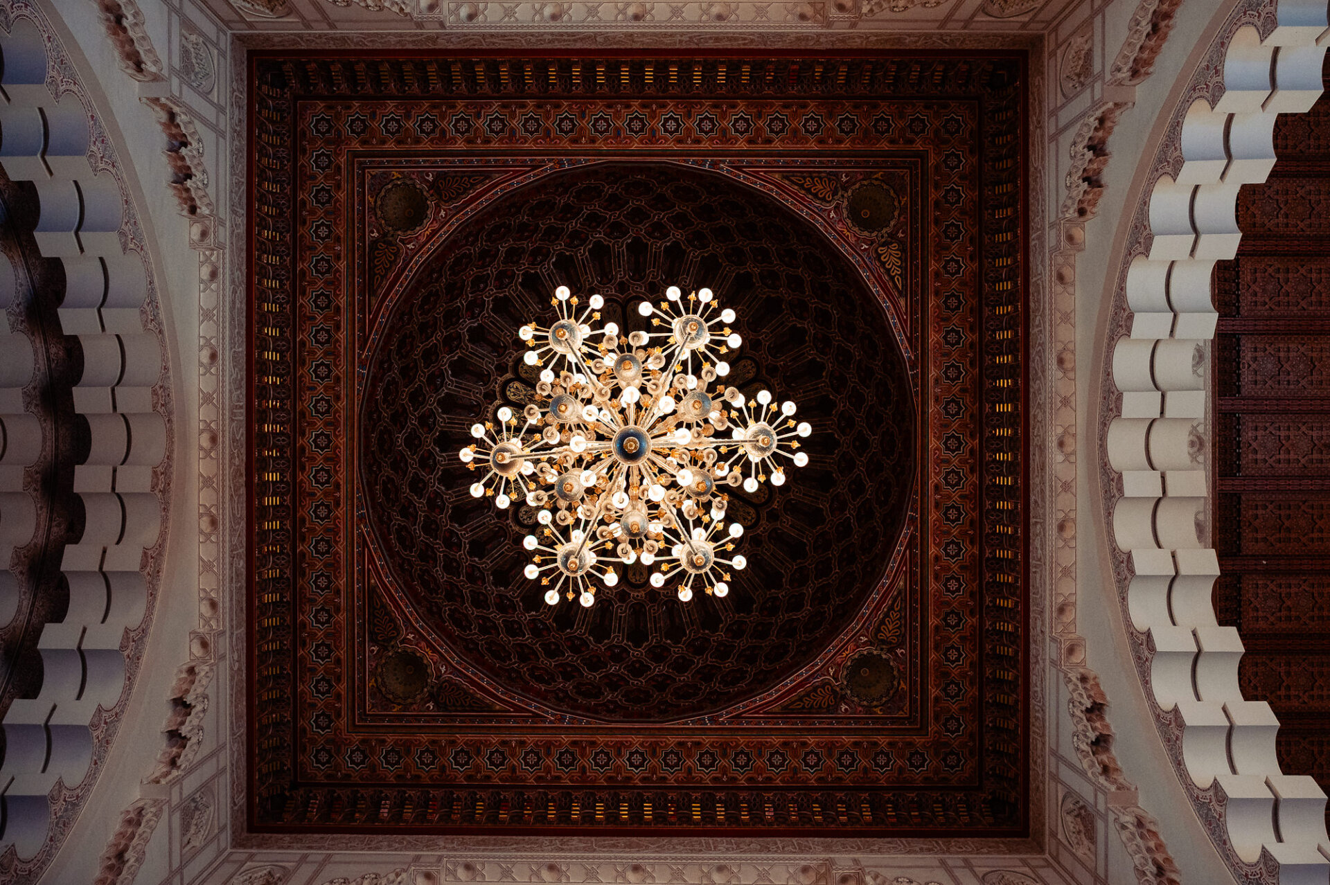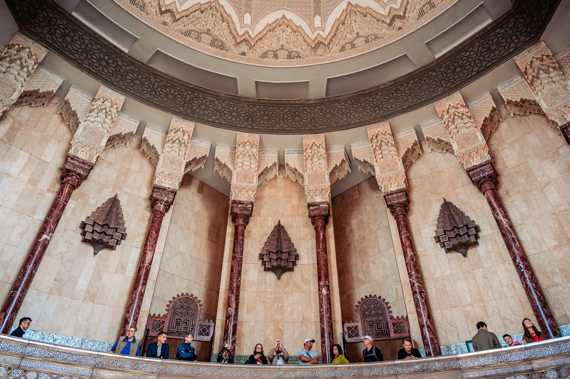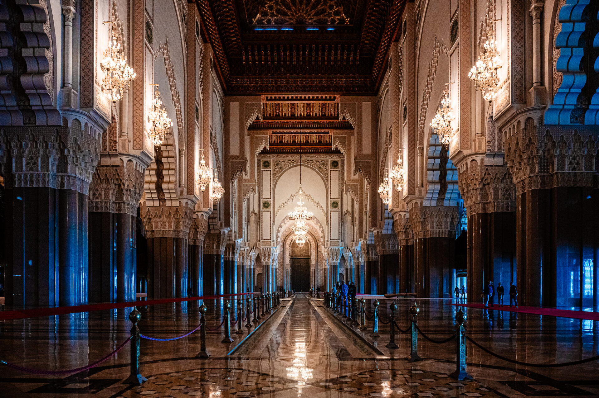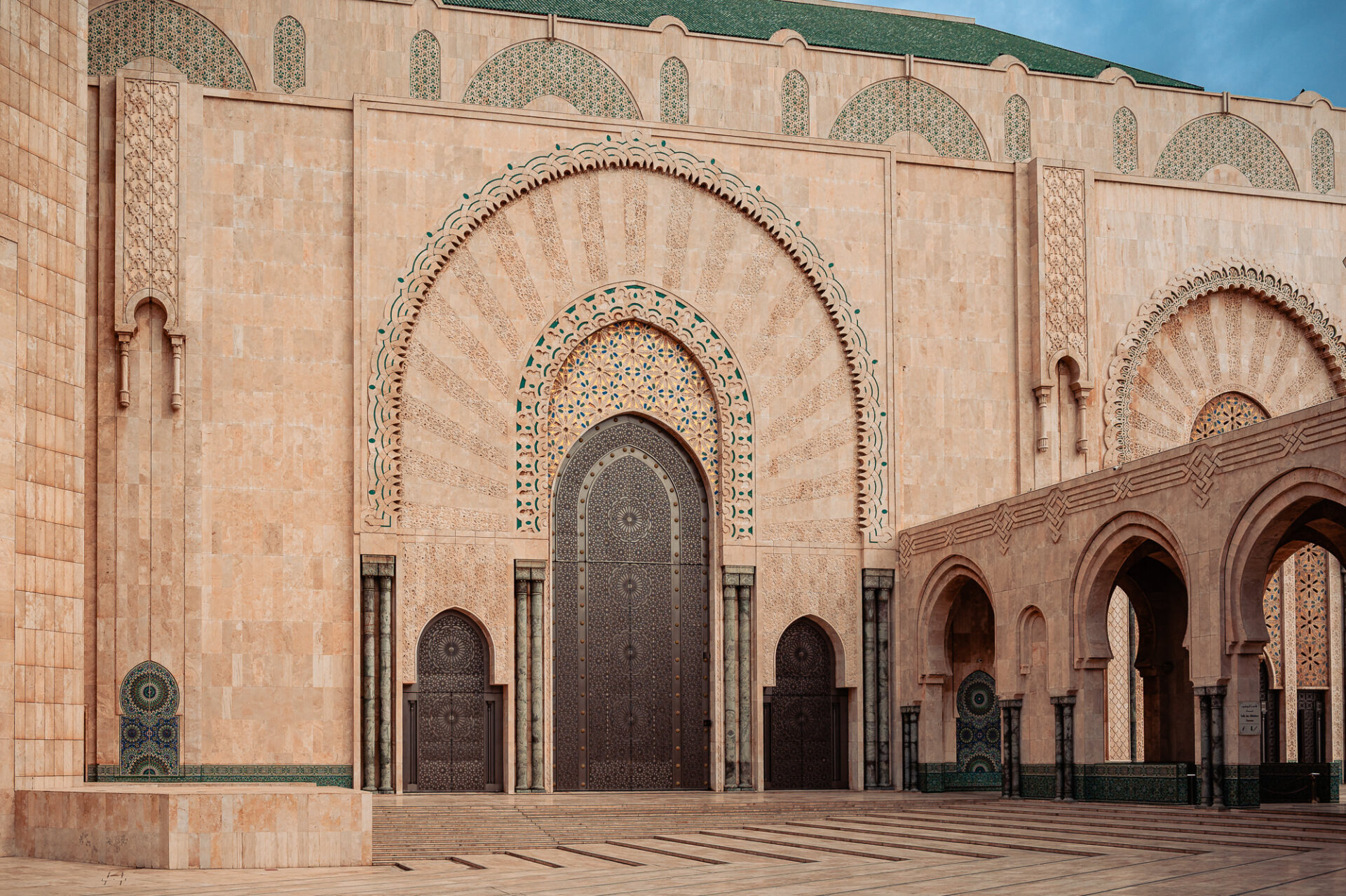 Perched on the edge of the Atlantic Ocean, the mosque stands on a promontory of reclaimed land. It is one of the largest mosques in the world, with a minaret that reaches 210 meters into the skies of Casablanca, making it the tallest religious structure on Earth. However, statistics alone cannot convey the experience of standing before it. The sheer scale of the building is almost beyond comprehension, yet it is crafted with extraordinary delicacy. Every surface is alive with hand-carved plaster, intricately laid zellige tilework, and exceptional cedarwood craftsmanship, which together prevent it from feeling overwhelming. Instead, it feels like a declaration of love. I’ll have the honor of photographing the wedding portraits of my son and his fiancé here the day before the wedding.
