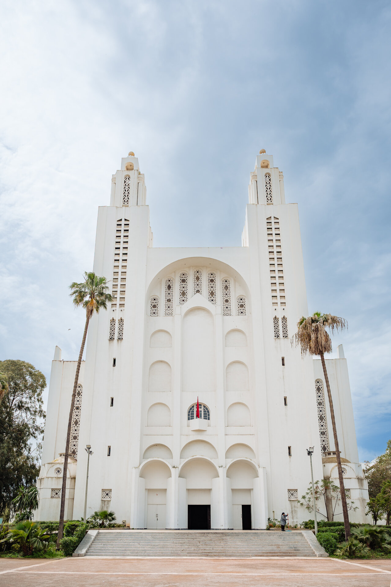 Its soaring twin towers and elegant white facade rise incongruously above the surrounding neighborhood, a reminder of the French Protectorate period that shaped so much of Casablanca’s architectural character. The building’s interior is equally striking with its vast, light-filled nave of clean modernist lines that carries a quiet grandeur even stripped of its original religious function.
