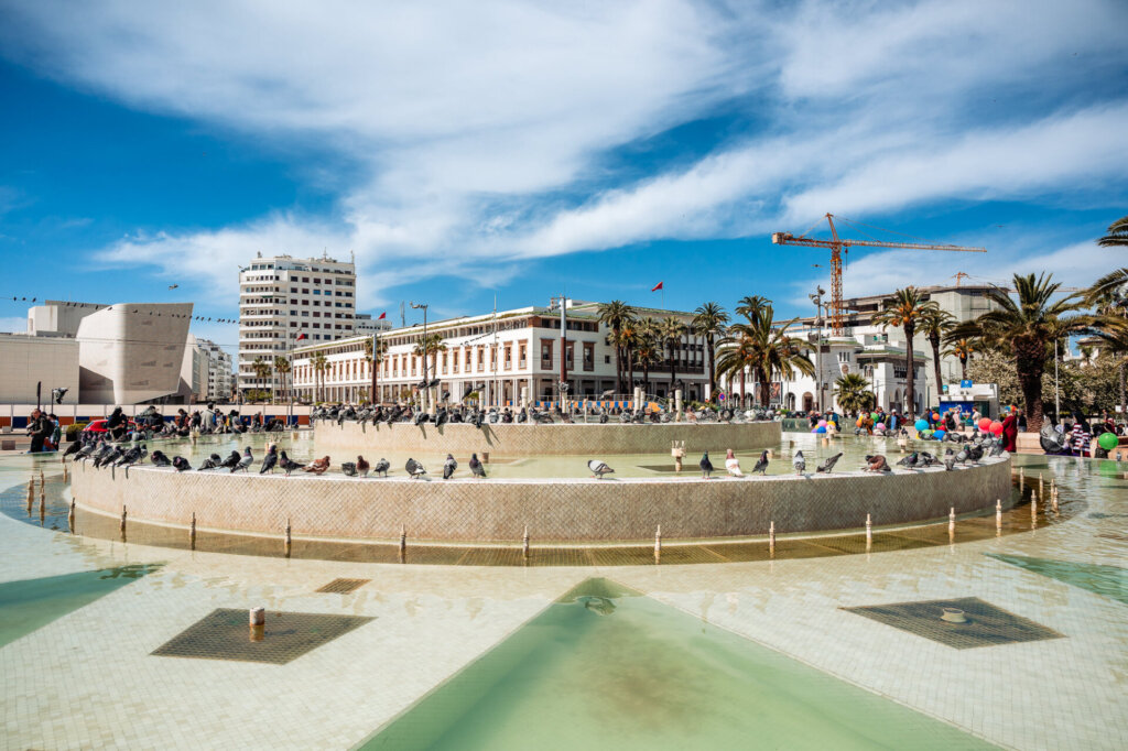 At the center of Casablanca’s civic life stands Mohamed V Square: a grand, formal space of fountains and gardens surrounded by the city’s most important Art Deco and Mauresque public buildings, including the law courts, the French Consulate, and the imposing Wilaya building.