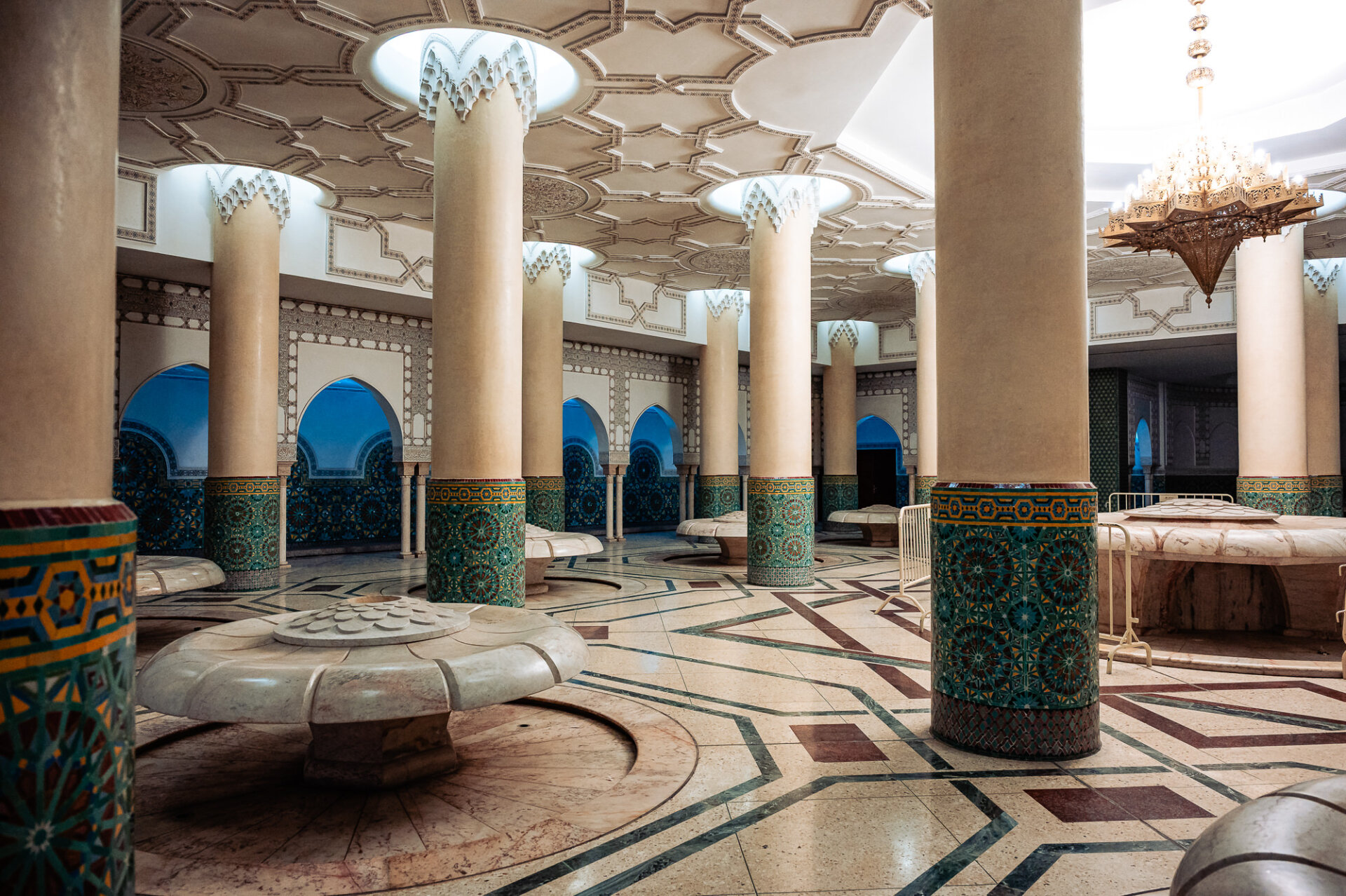 As a photographer, I have dedicated my career to capturing beautiful spaces. I have stood in cathedrals, gardens, clifftops and city streets around the world, always attentive to how a space conveys light and emotion. The Hassan II Mosque possesses both qualities with a generosity and grandeur that I have rarely encountered. The interior, which allows a limited number of non-Muslim visitors, is flooded with light through retractable roof panels, illuminating a prayer hall of breathtaking proportions.