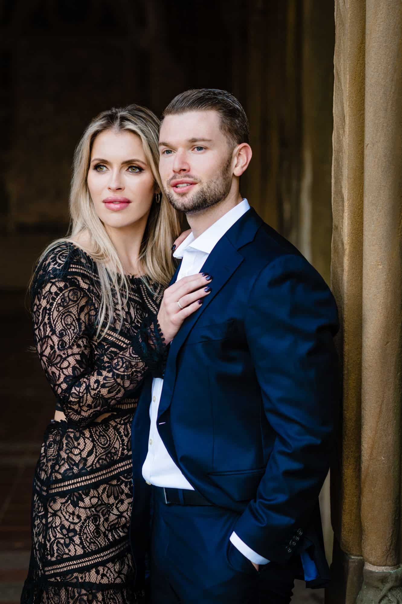 The thing we love about a Central Park e-session is its simplicity. All you need to do is determine where you’re going to meet, then just go for a walk and hang out! There’s so much variety in the park. You have Bethesda Fountain, the Boathouse, Belvedere Castle, Umpire Rock and so many other beautiful locations. It’s easy to take this gem for granted, and I’m reminded of it every time I’m there. I was excited when I saw the weather forecast for Aly & Alex’s session was going to be perfect, and Mother Nature did not disappoint!