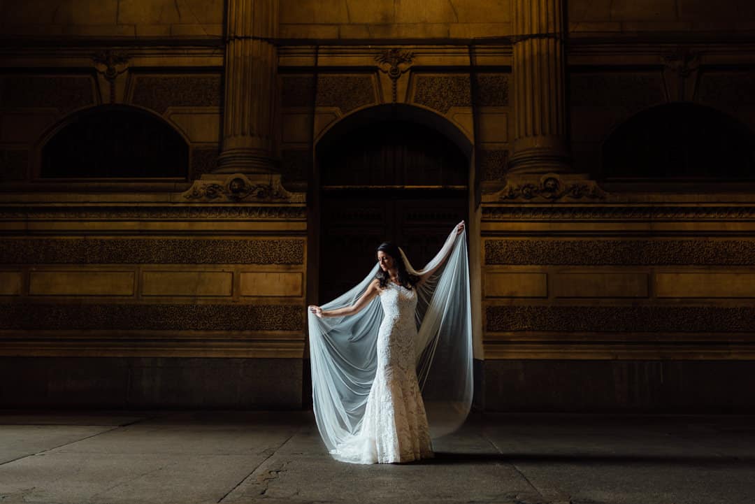 We’ll monitor the weather and natural light ahead of time. The interior passageways and covered arches of City Hall act as strong backup options if the sky is overcast or the weather changes. If outdoor light becomes harsh, we’ll shift to shaded or covered spots so your images still turn out premium.