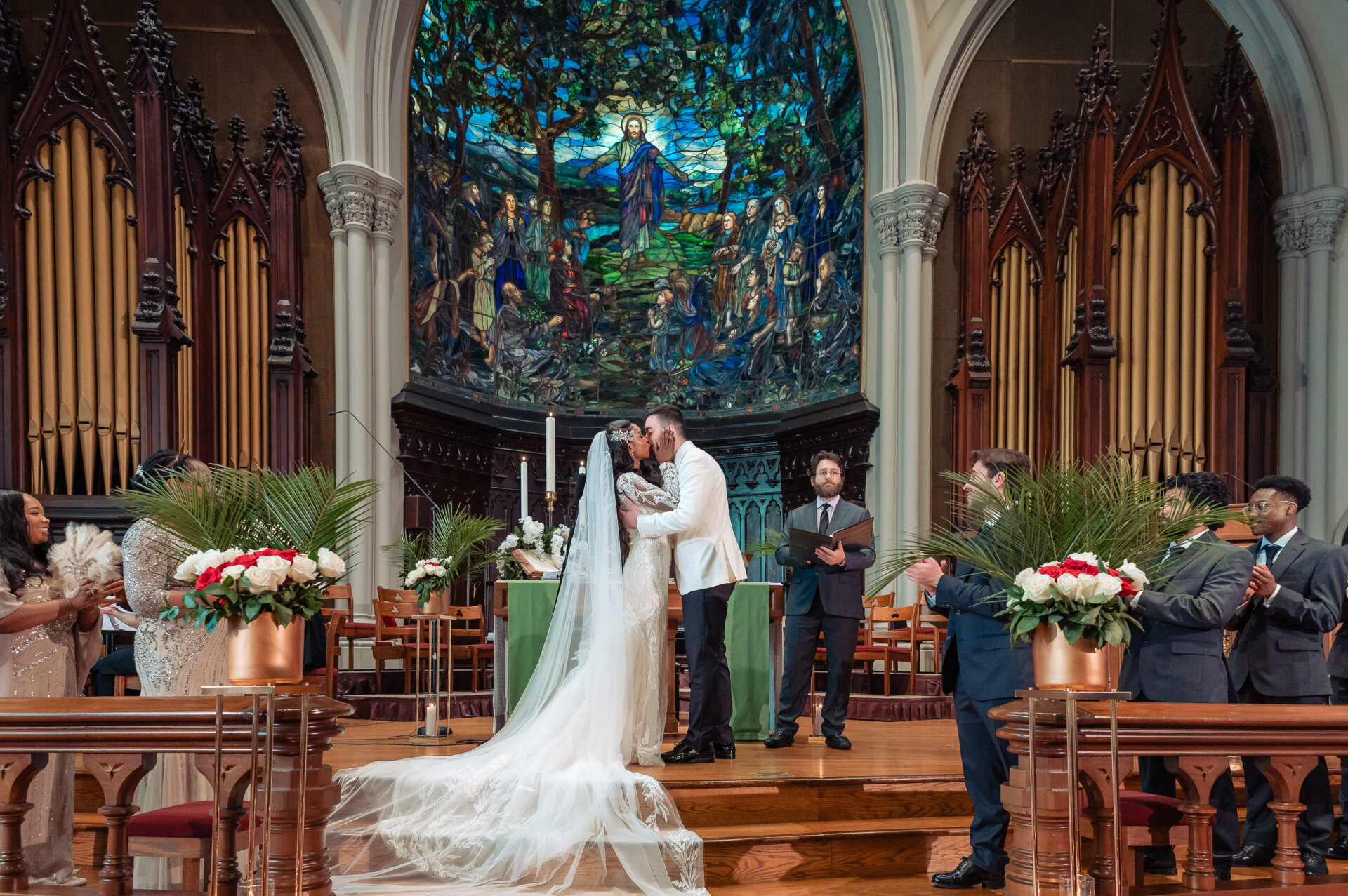 Valerie and Sly’s wedding at Hotel DuPont brought together the grandeur of a historic landmark with the warmth of a day centred on one simple joy: finally becoming husband and wife. Valerie has always loved vintage details and the unique charm of earlier decades, so a 1920s-inspired celebration felt natural from the start. With its gilded ceilings, marble columns, and richly ornate design, Hotel DuPont offered the perfect backdrop for her vision. Every corner of the venue, from the sweeping staircases to the classic corridors, echoed the glamour and romance of the era she adores.