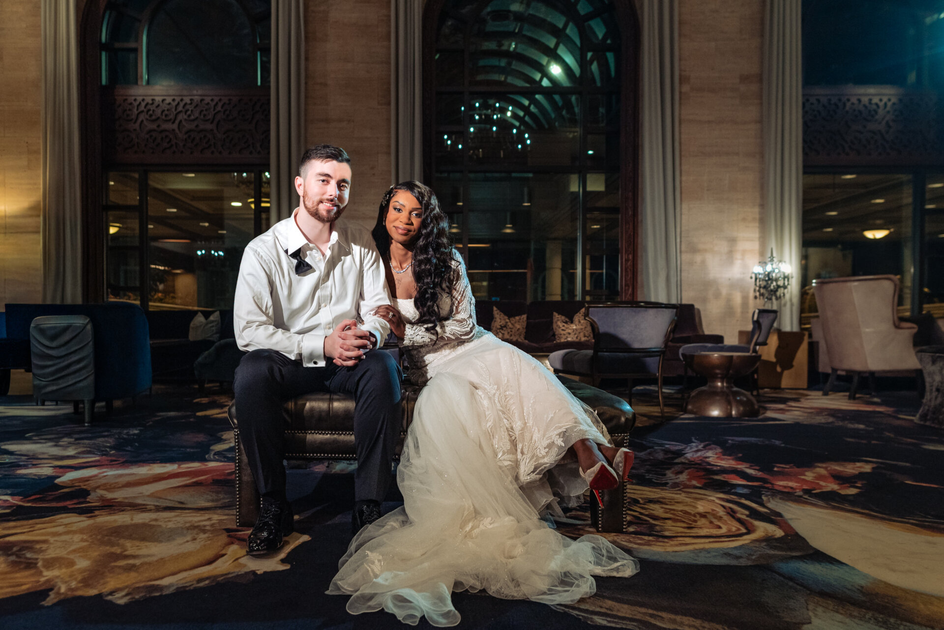 Their ceremony and reception carried the same spirit of intention and elegance, focusing on the moment they had been looking forward to most: being married. Surrounded by family and friends, they shared a day filled with heartfelt emotion, laughter, and a steady, genuine connection. The Ballroom’s warm glow and vintage atmosphere elevated every portrait and candid moment, blending their personal style with the hotel’s storied beauty. It was a celebration that felt both timeless and deeply personal — a perfect beginning to the life they’ve long been ready to share.
