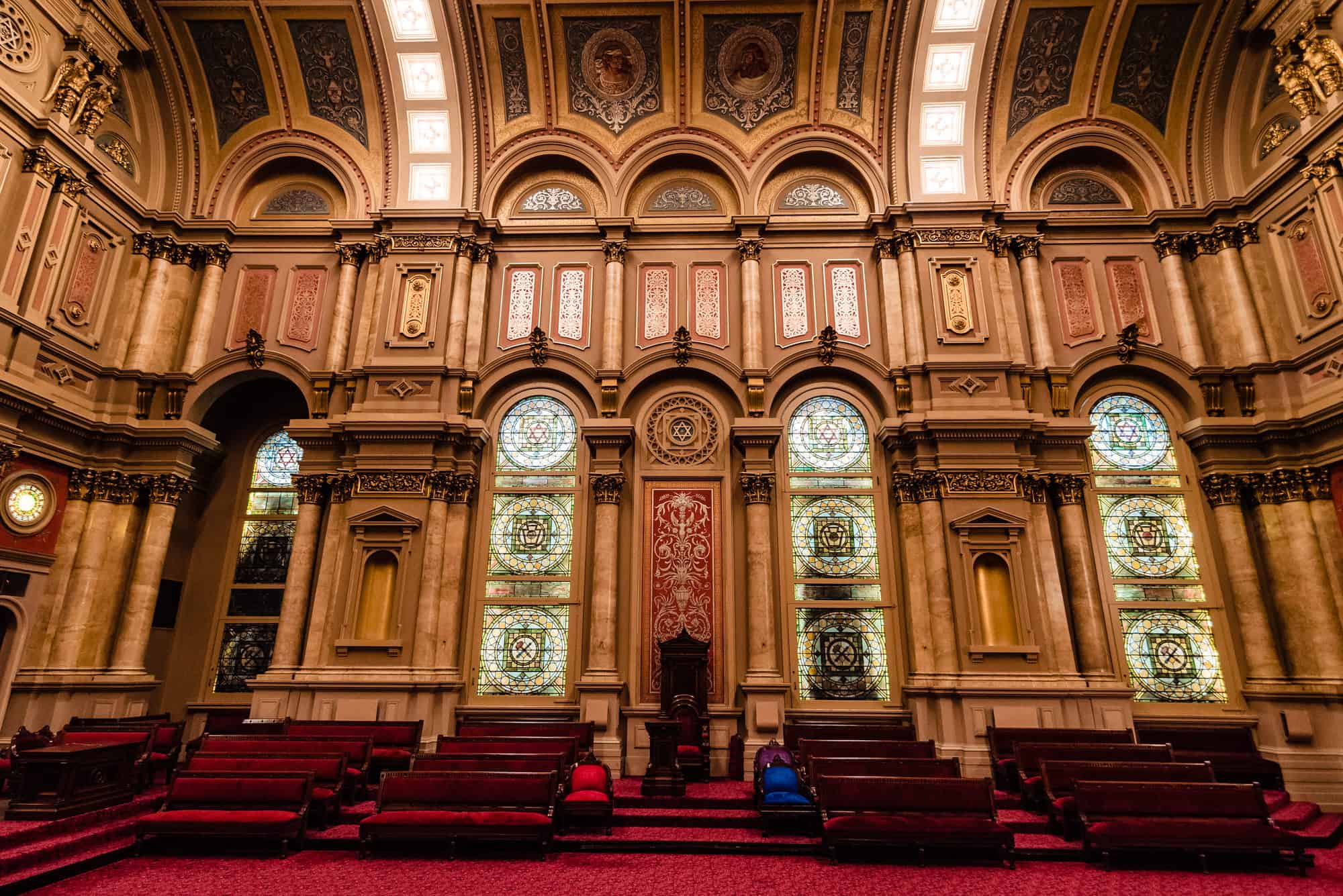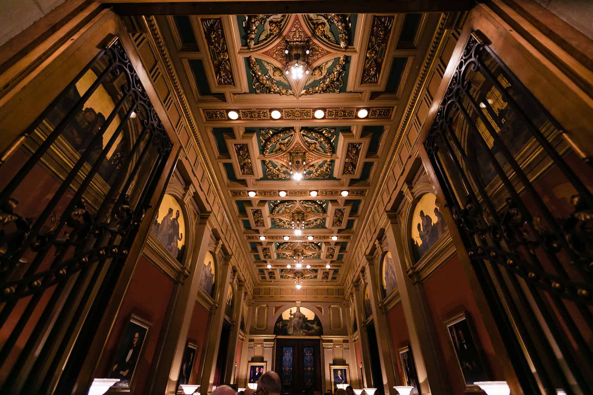 Detail shot of the symmetrical design of the ceiling at the Masonic Temple of Philadelphia.