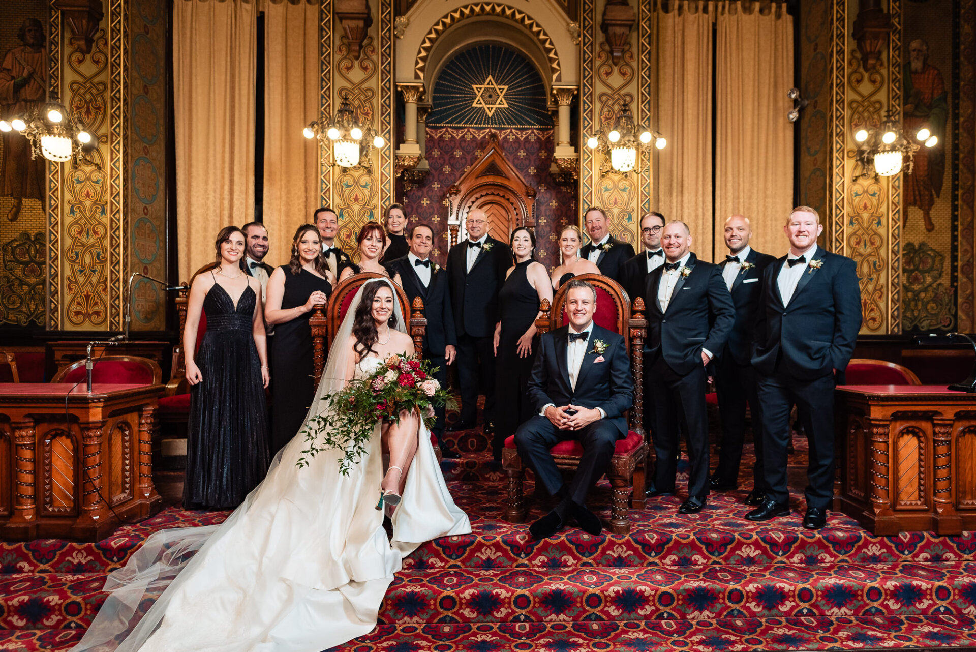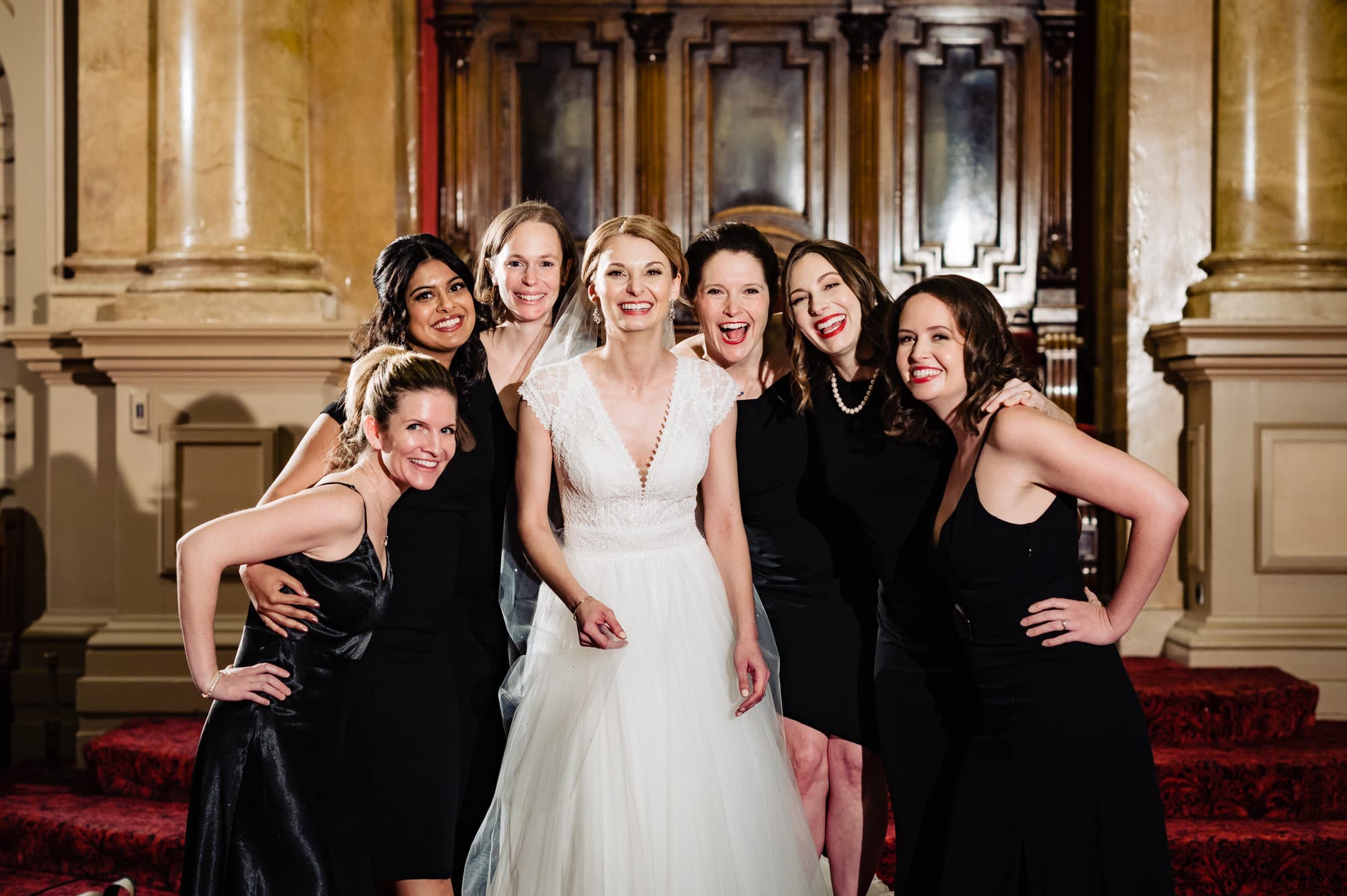 Portrait of a bride and her bridesmaids in a beautiful room at the Masonic Temple of Philadelphia