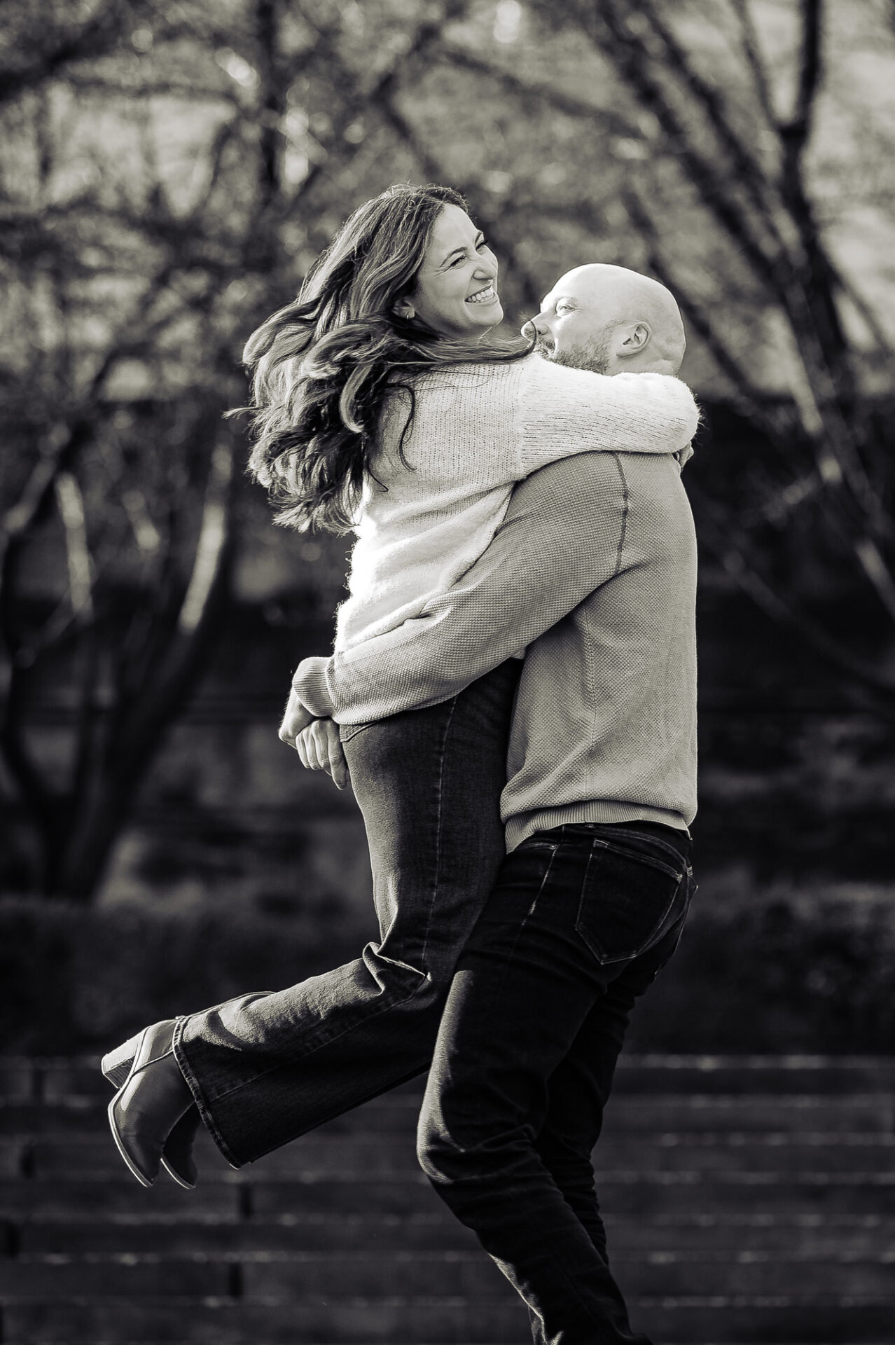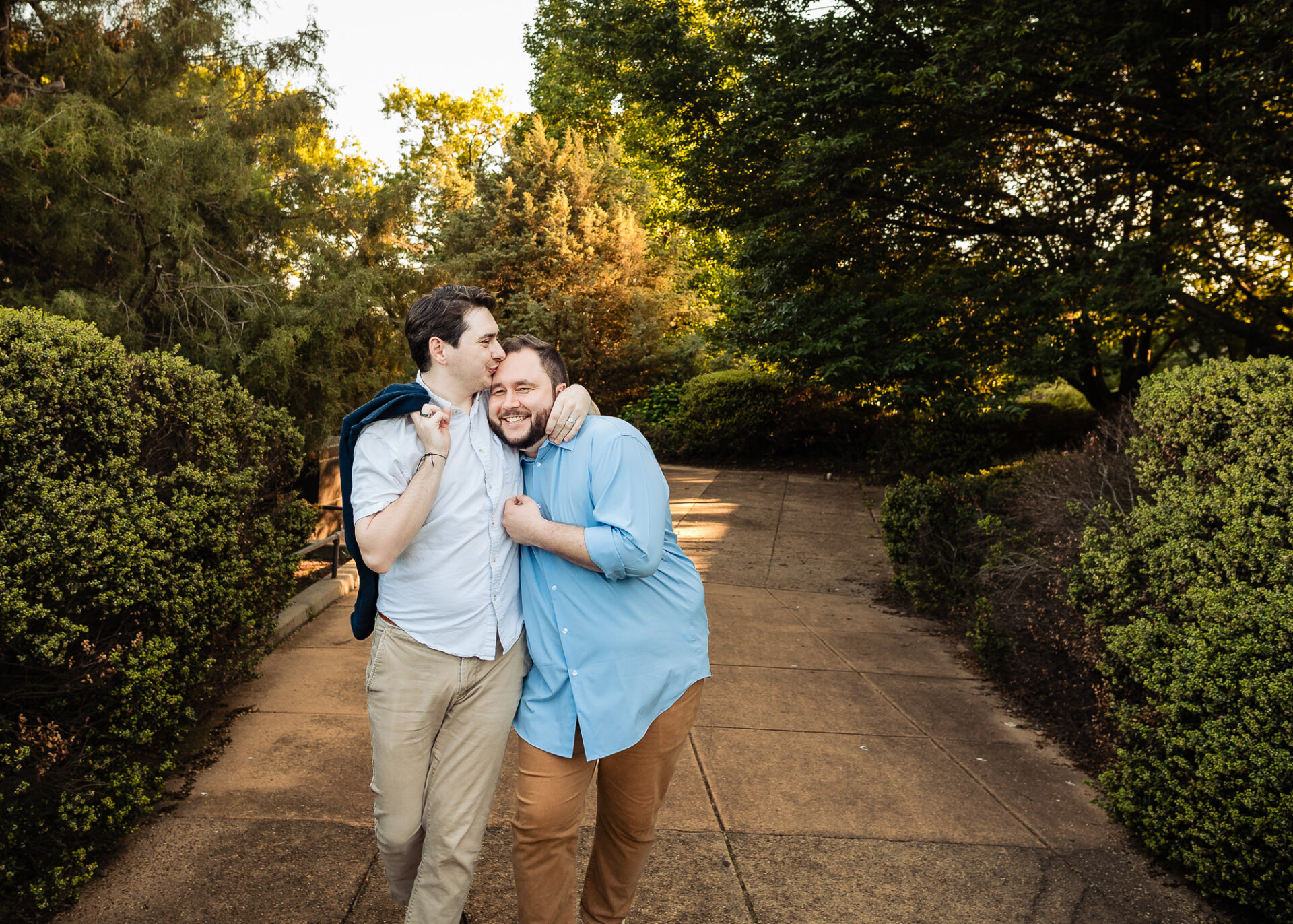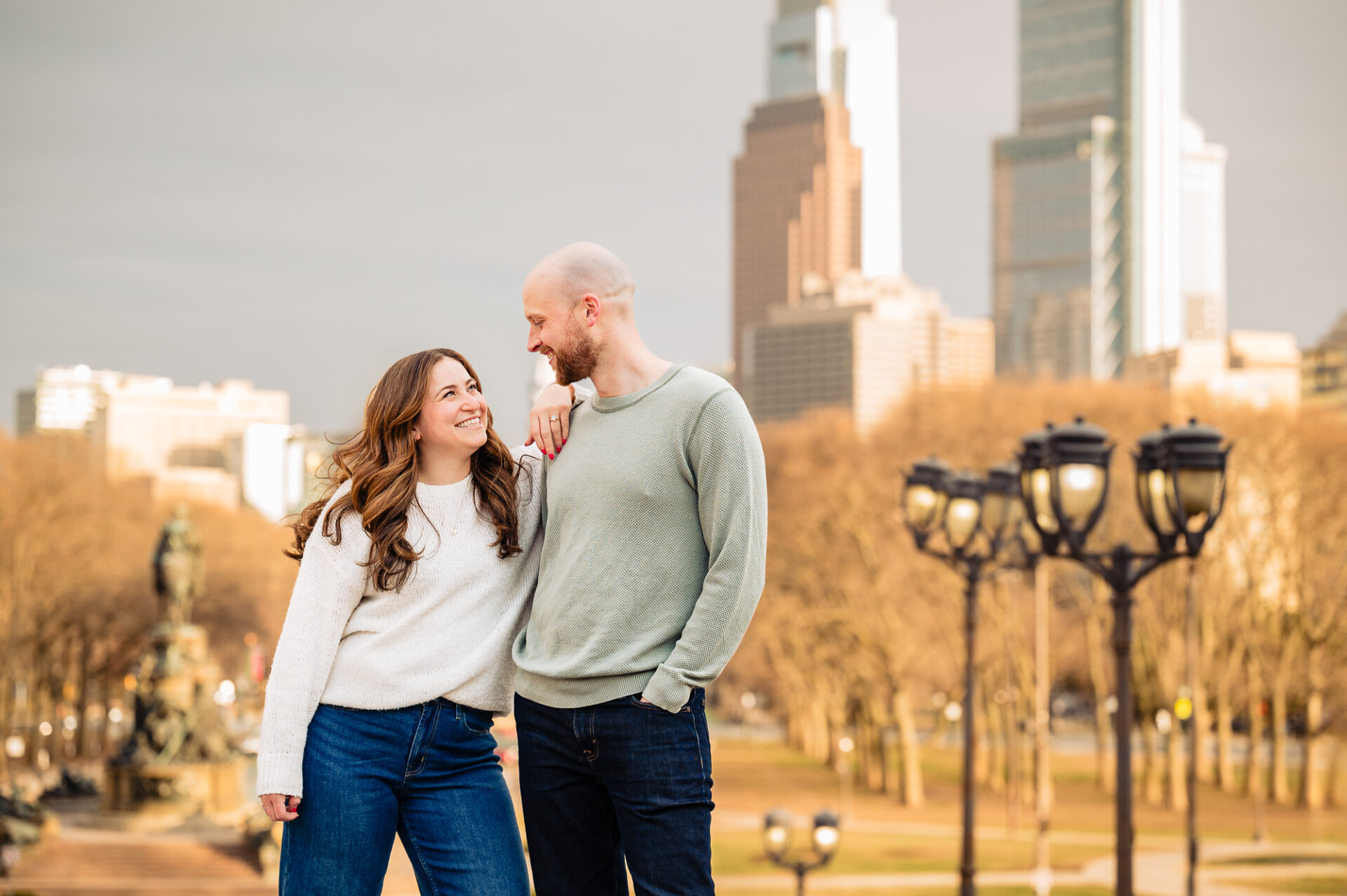 The Philadelphia Museum of Art is an iconic location in Philadelphia that needs no introduction. It has been featured in dozens of movies and television shows. The views of the Ben Franklin Parkway from the museum are magnificent. However, what I love about this location has nothing to do with the famous steps that Rocky climbed. Many areas surround the museum that are away from the crowds. They make for beautiful and intimate engagement shoot locations.