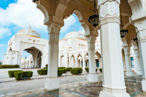 The location exudes grandeur, reminiscent of a mosque or perhaps a palace from the Arabian Nights, adorned with lavish decorations, including its majestic domes and cupolas.