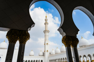 From the Observation Deck at 300 in Tower 2 of the Etihad Towers, one can enjoy a breathtaking view of Sheikh Zayed Grand Mosque and Qasr Al Watan.