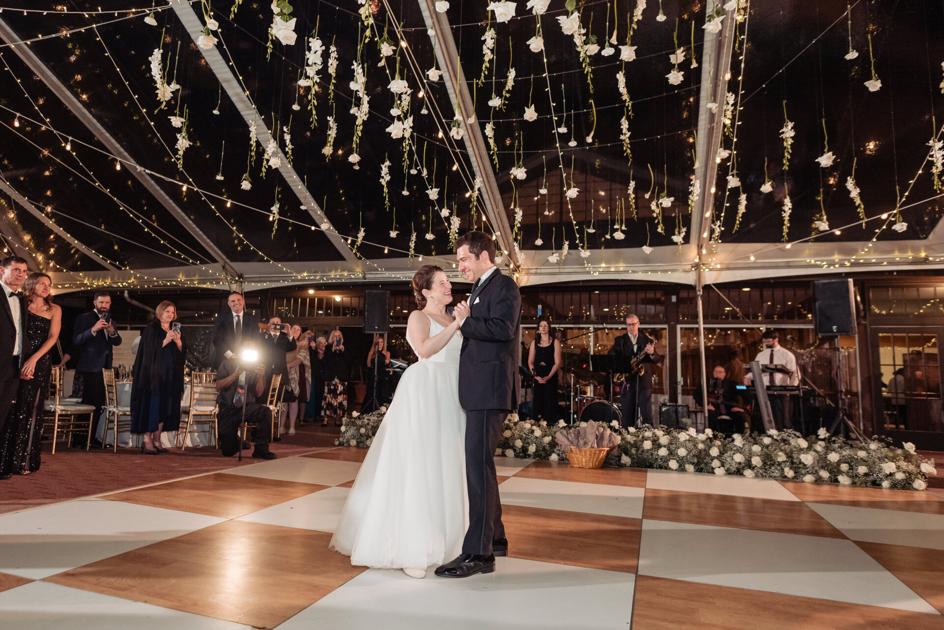 Venue: Winterthur Museum Garden and Library | Officiant: Storied Celebrations | Caterer: Restaurant Associates | Coordinator: Proud to Plan | H&M: Gloss Salon | Dress: Jennifer’s Bridal | Suit: The Black Tux | Floral: Petals Lane | Cake: The Master’s Baker | Video: Martin’s Video | Entertainment: Bachelor Boys Band | Tent, Lighting & Rentals: Collective Event Group | Stationery: Zola | Transportation: DE Limo