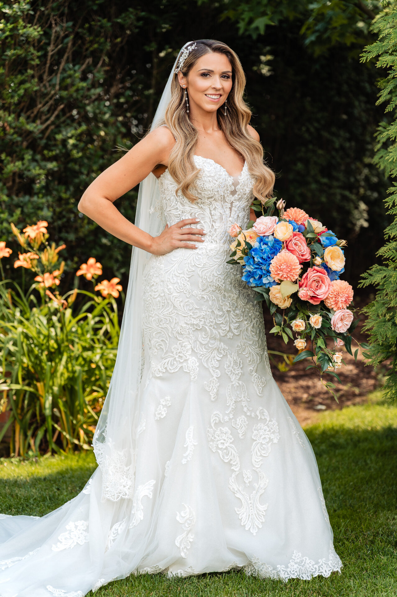 Reception: White Chimneys Estate | Officiant: Ray Baraldi | Dress: Kleinfelds– Maggie Sottero | Grooms Suit: Brooks Brothers custom suit | Cake: House of Clarendon | Music: Center Stage Entertainment | Hair: Alicia DiGianvittorio | Make-up: Gina Ritacco (for bride) and True Beauty Marks (for girls) | Florist: Carol Herrington | Videographer: New Pace Weddings